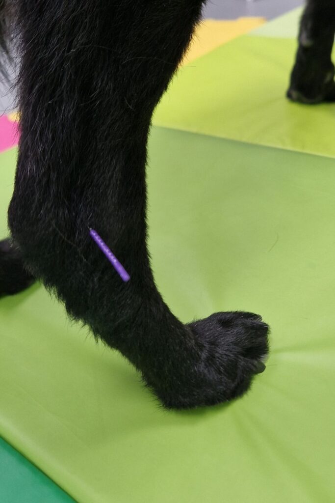 During the appointment, your pet is free to move around but this does increase the likelihood of needles falling out. So, it can be a good idea to have treats on hand to keep your pet comfortable, relaxed and content throughout their treatment, with minimal handling. We have found that filled rubber toys and licky mats can be very helpful to keep cats and dogs happy and still – tubes of licky treats are particularly popular with cats!